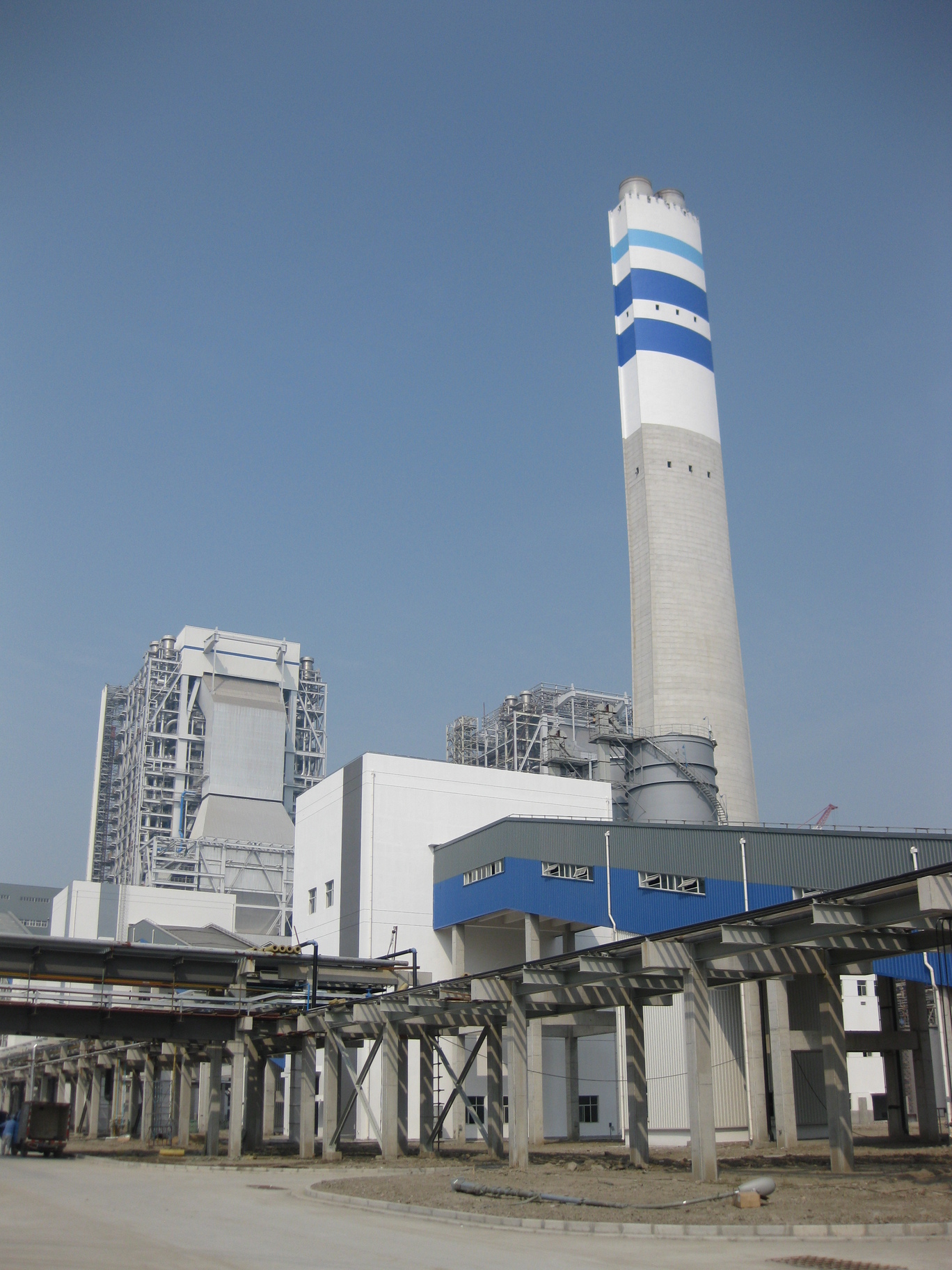 該工程是國(guó)內(nèi)百萬(wàn)千瓦機(jī)組工程首座異型煙囪,底部呈圓形,向上逐漸收攏呈橢圓形。在工程建設(shè)中,上海電建研發(fā)的異型煙囪平面轉(zhuǎn)動(dòng)裝置獲得了國(guó)家新型實(shí)用專利。該煙囪已成為漕涇電廠的標(biāo)志性建筑。